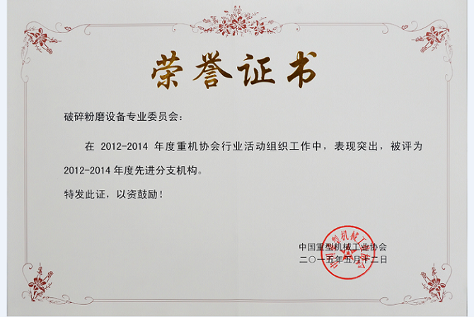 2015年5月11日至13日,以“適應(yīng)新常態(tài),尋找新動(dòng)力,謀求新發(fā)展”為主題,中國(guó)重型機(jī)械工業(yè)協(xié)會(huì)六屆四次會(huì)員代表大會(huì)暨理事會(huì)在北京順利召開(kāi)。會(huì)議審議并通過(guò)了常務(wù)副理事長(zhǎng)李鏡作的《在新常態(tài)中創(chuàng)出行業(yè)發(fā)展的新空間》工作報(bào)告、秘書長(zhǎng)岳建忠作的《財(cái)務(wù)報(bào)告》,表彰了優(yōu)秀分支機(jī)構(gòu),我破碎粉磨設(shè)備專業(yè)委員會(huì)受到總會(huì)的表彰。