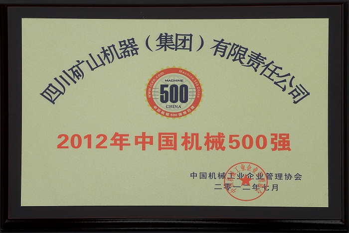 2012年,由中國機(jī)械工業(yè)企業(yè)管理協(xié)會主辦、機(jī)械工業(yè)經(jīng)濟(jì)管理研究院和世界經(jīng)理人集團(tuán)聯(lián)合承辦的“中國機(jī)械500強(qiáng)”榜單上,四川礦山機(jī)器(集團(tuán))有限責(zé)任公司位列第400位。川礦集團(tuán)作為省裝備制造業(yè)骨干企業(yè),將不斷夯實(shí)基礎(chǔ),提高企業(yè)自主創(chuàng)新,提升質(zhì)量管理和科技創(chuàng)新水平,為四川經(jīng)濟(jì)社會發(fā)展作出貢獻(xiàn)。